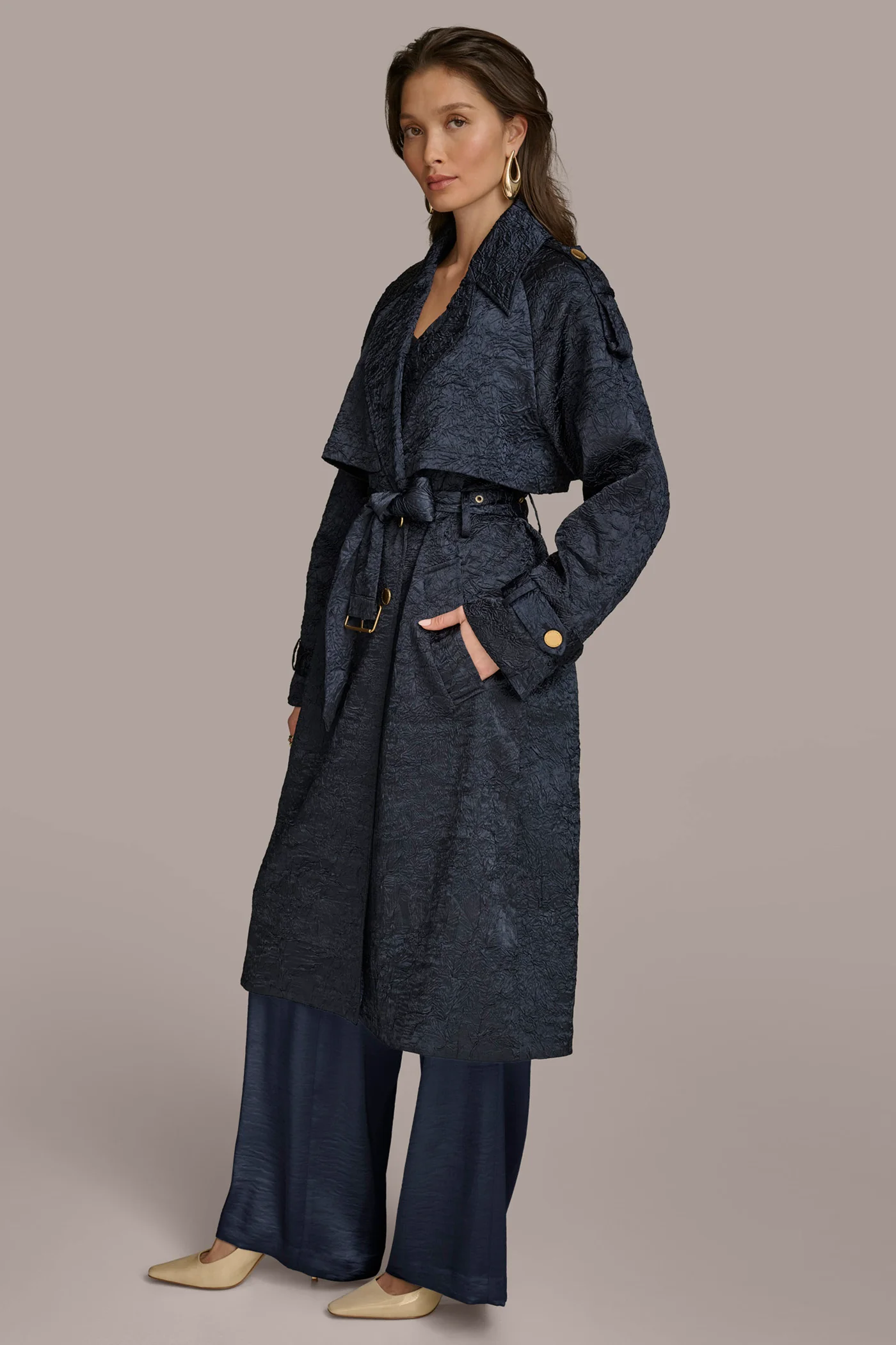 CRUSHED SATIN TRENCH COAT