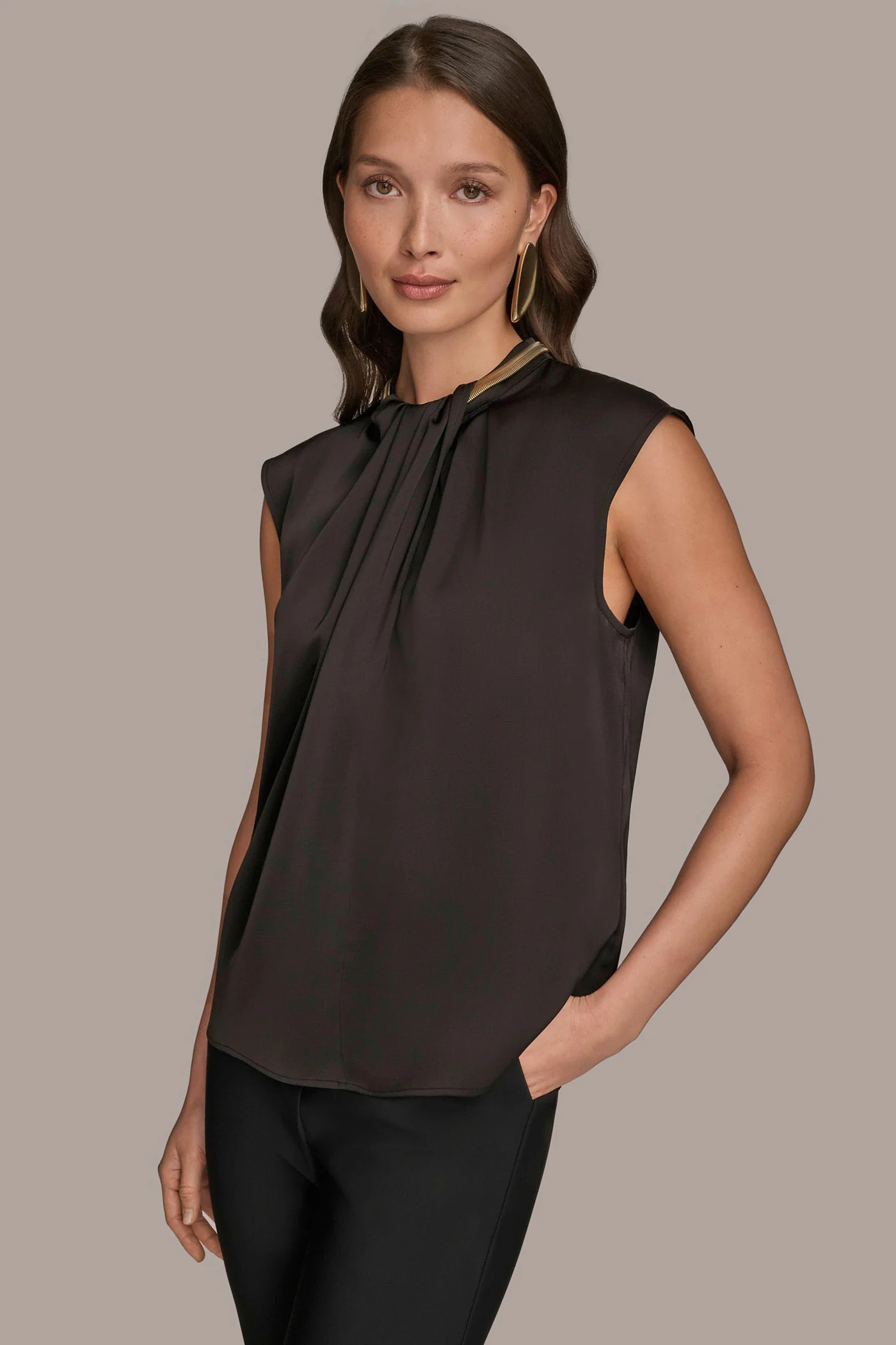 - Sleeveless Extended Shoulder Embellished High Crew-Neck Twist-Front Top