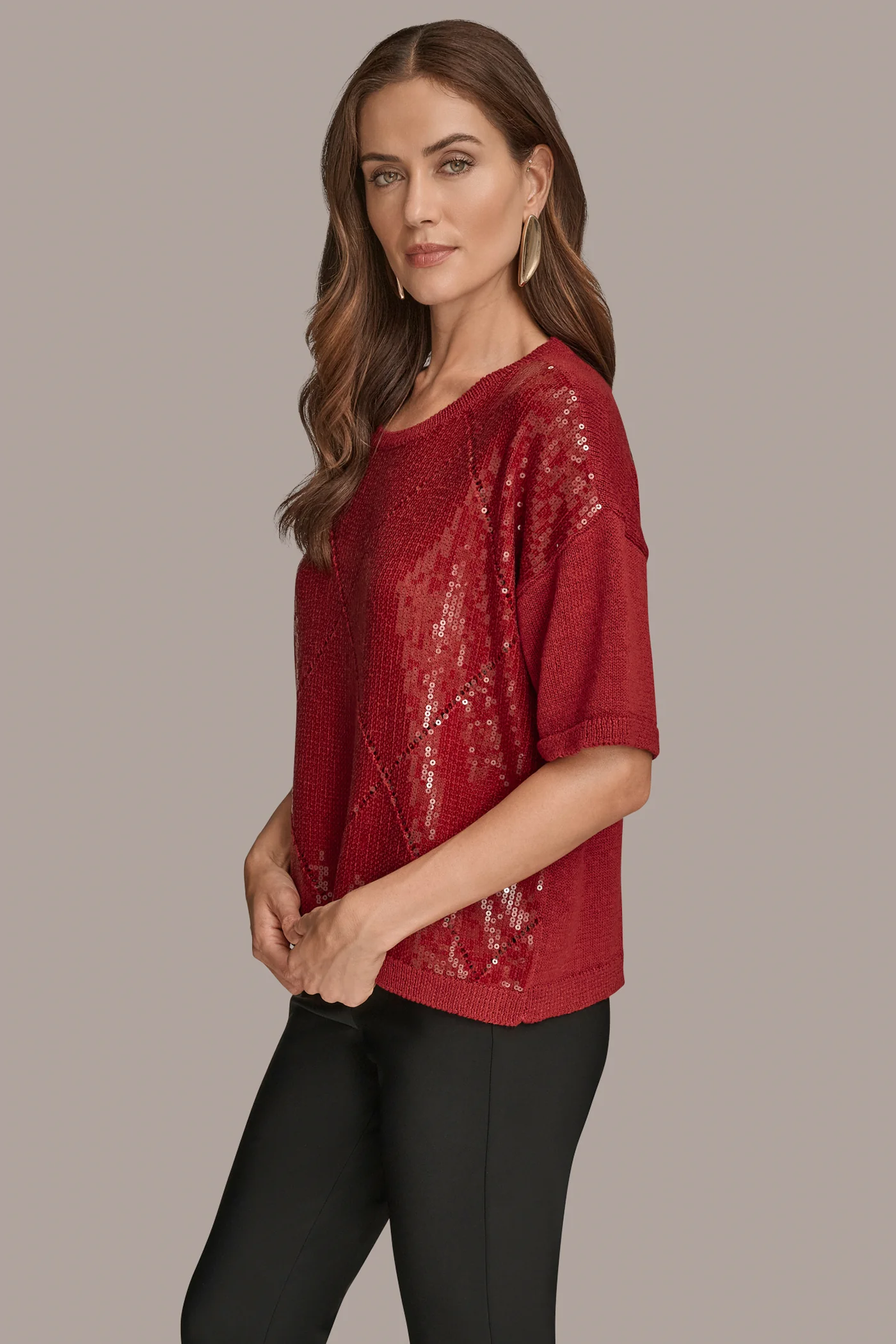 ELBOW-SLEEVE SEQUIN SWEATER