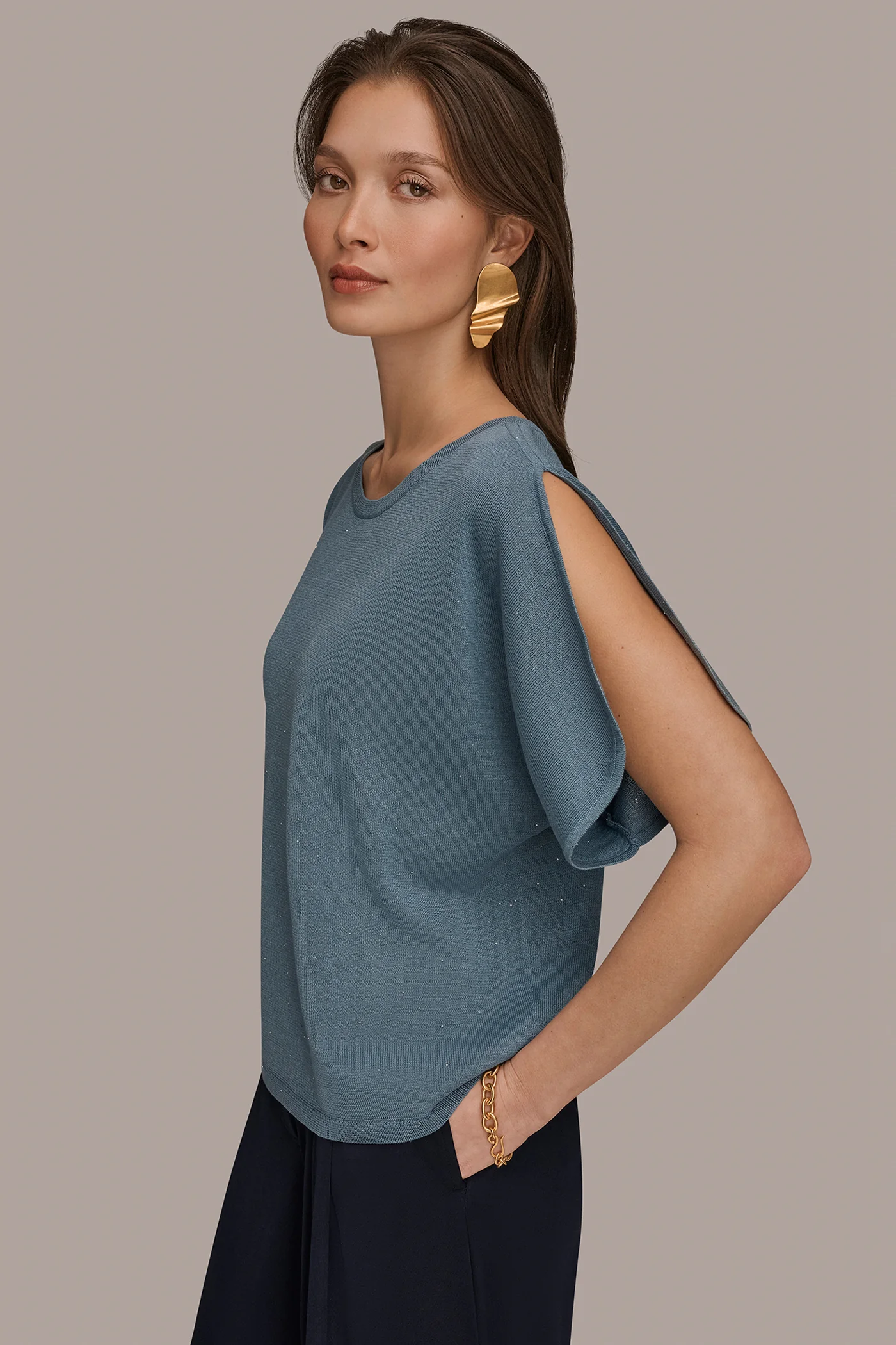 SEQUIN SPLIT SLEEVE SWEATER