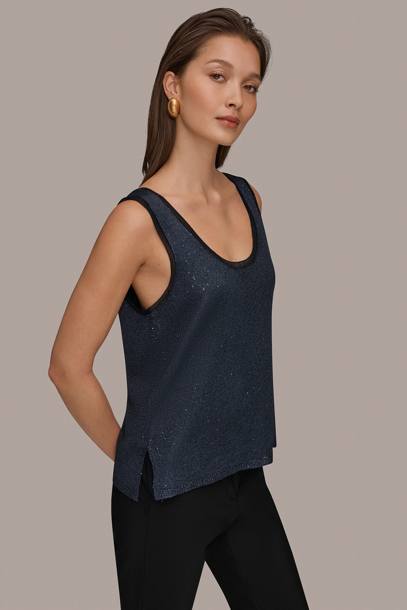 SCOOP-NECK SEQUIN SHELL TOPā