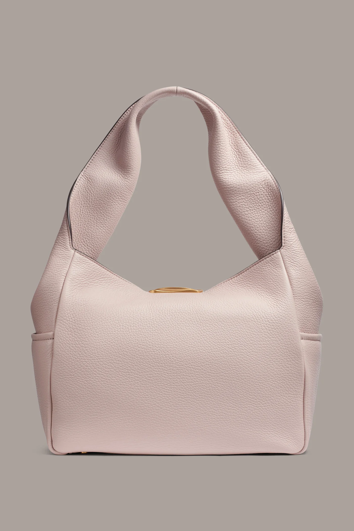 - Two exterior gusseted slip pockets; three interior slip pockets, back zip pocket, and credit card slot; sculptural shoulder handle; Amagansett snap fastening