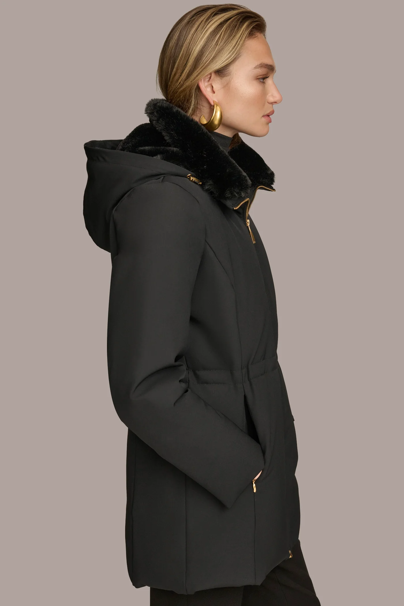 - Faux fur lined hood