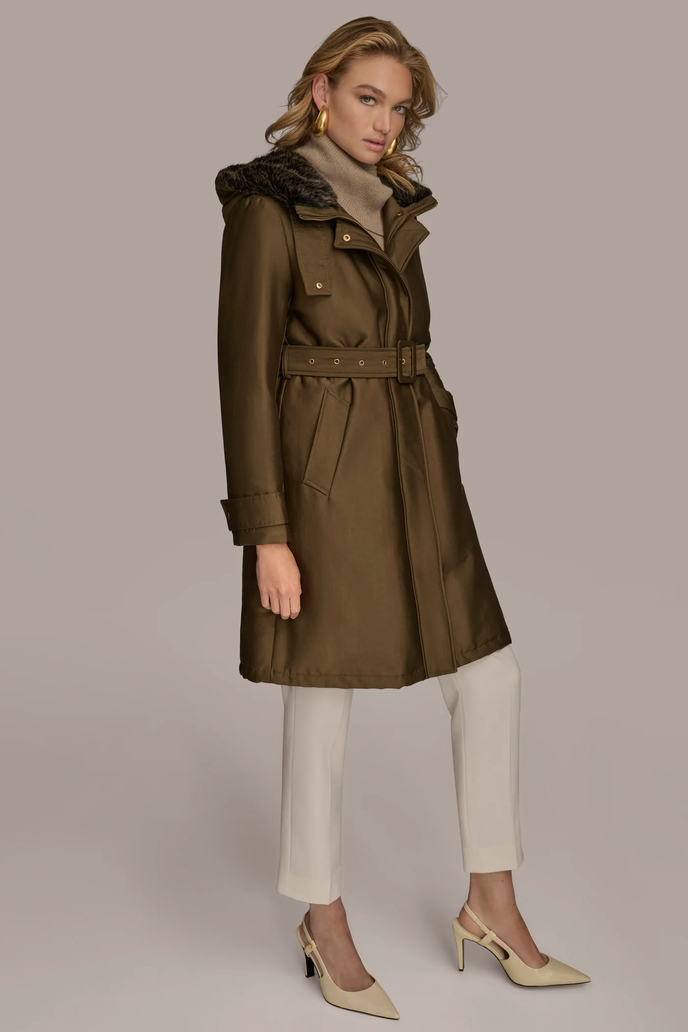 FAUX FUR TRIM LINED RAIN COAT