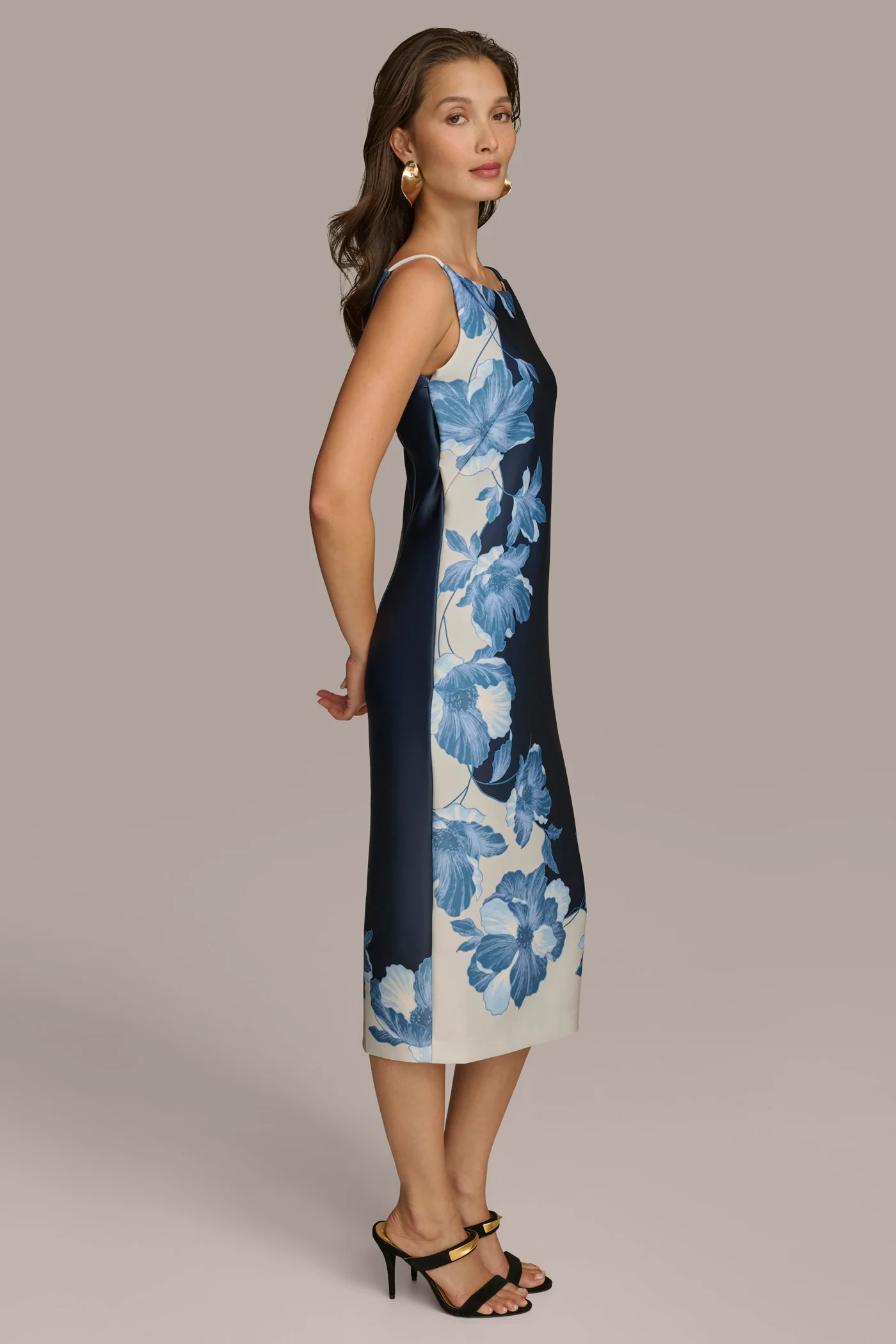 SCUBA FLORAL PLACEMENT PRINT MIDI DRESS