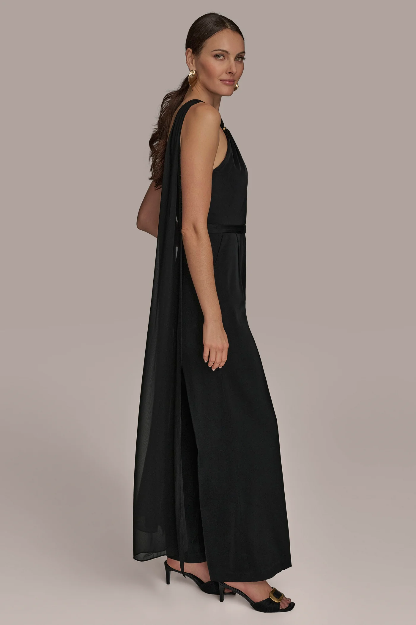 SATIN CAPE-BACK HALTER JUMPSUIT