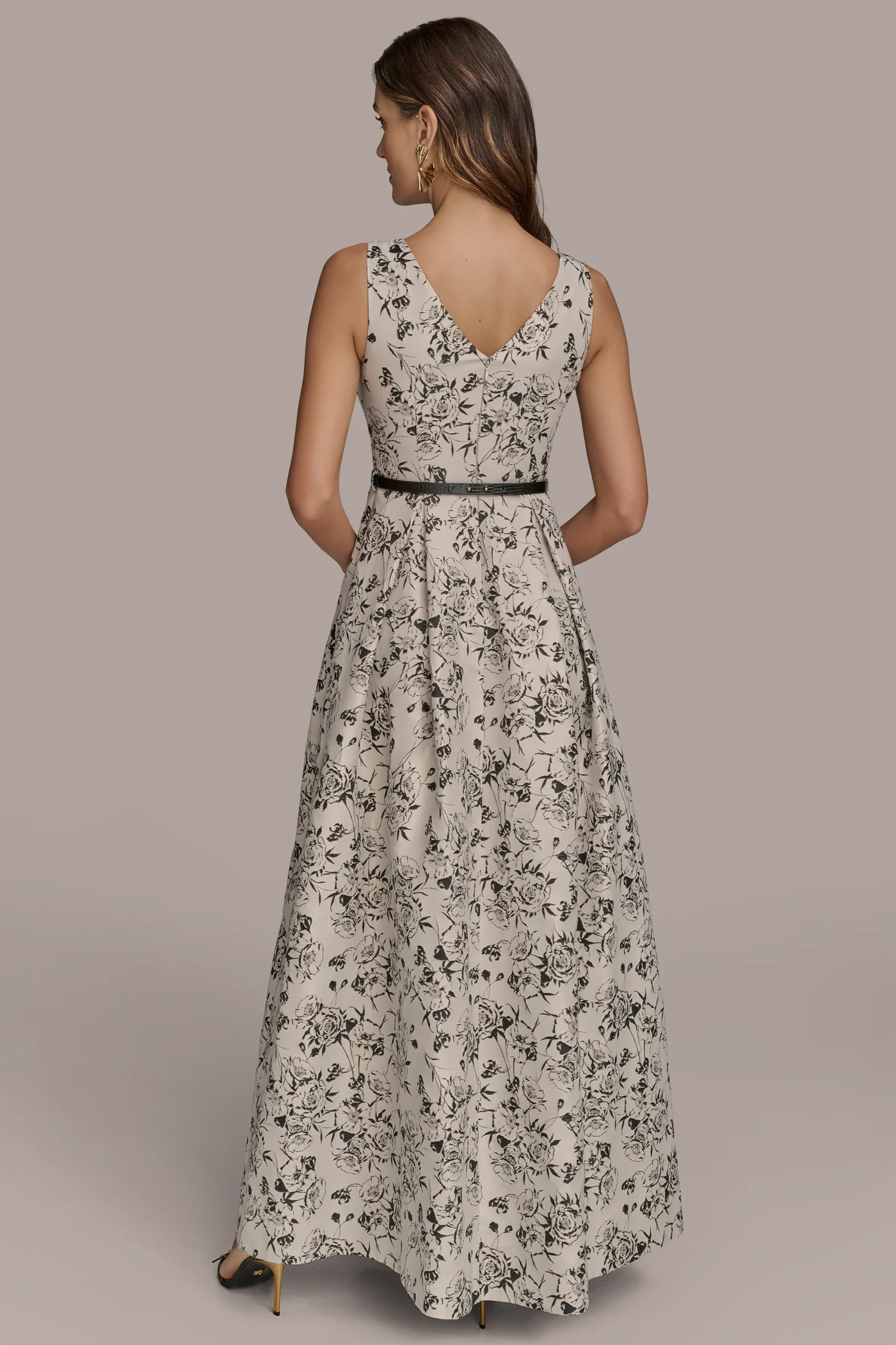 FLORAL BROCADE SLEEVELESS BALL GOWN