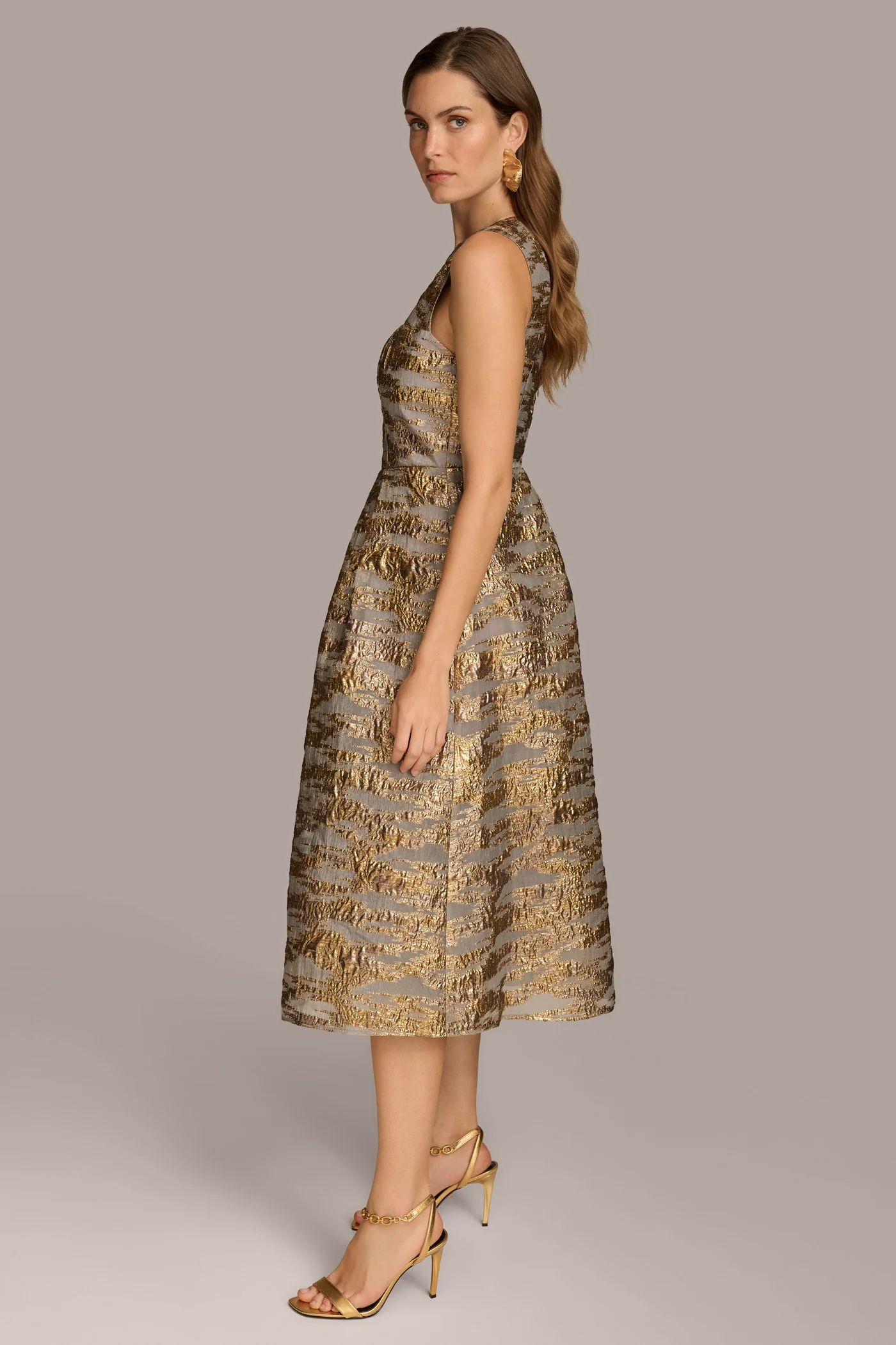 BROCADE ORGANZA SLEEVELESS MIDI GOWN