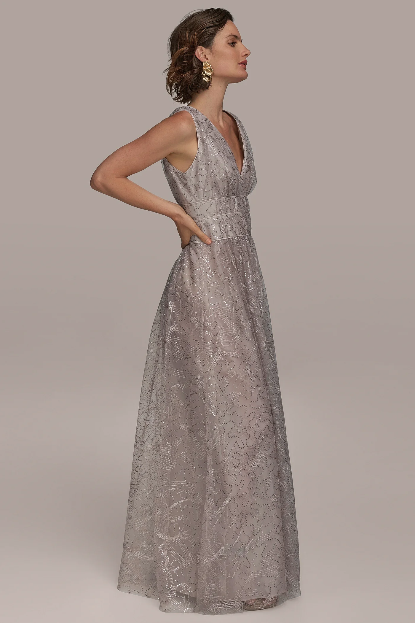 TULLE SEQUIN SLEEVELESS BALL GOWN