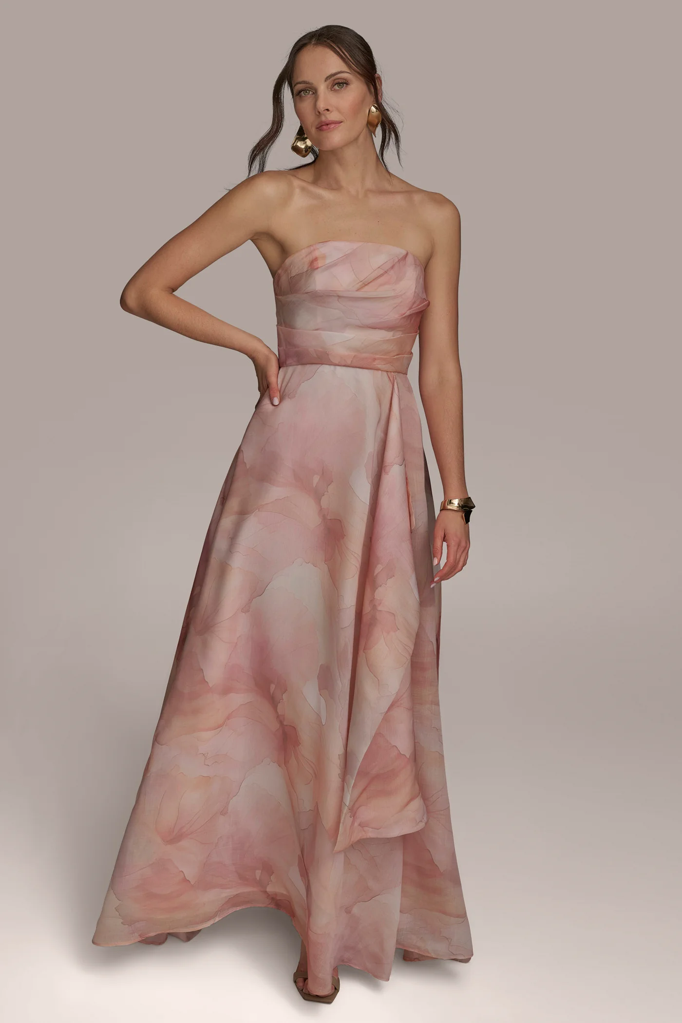 ORGANZA FLORAL STRAPLESS BALL GOWN