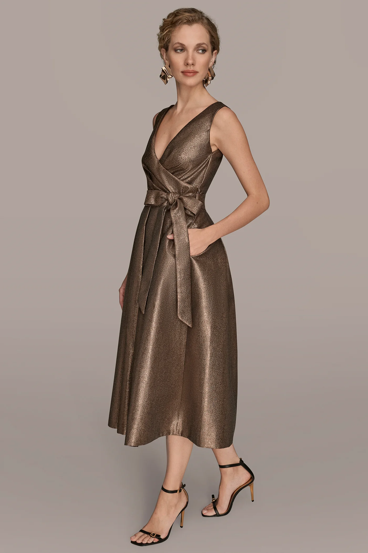 - Sleeveless Wrap-Effect V-Neck Bow-Waist Midi Gown