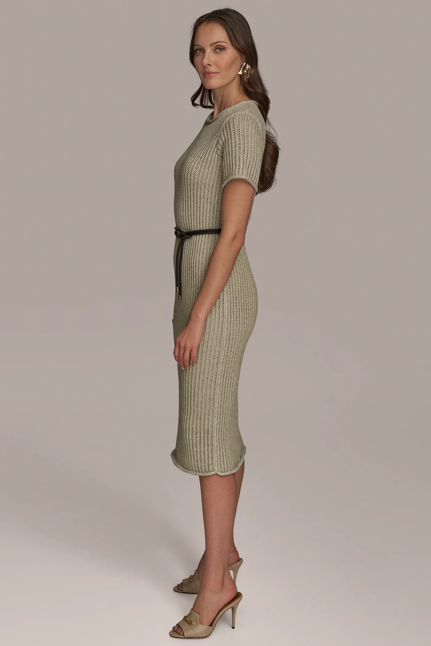 -70%METALLIC RIBBED COTTON SWEATER DRESS—