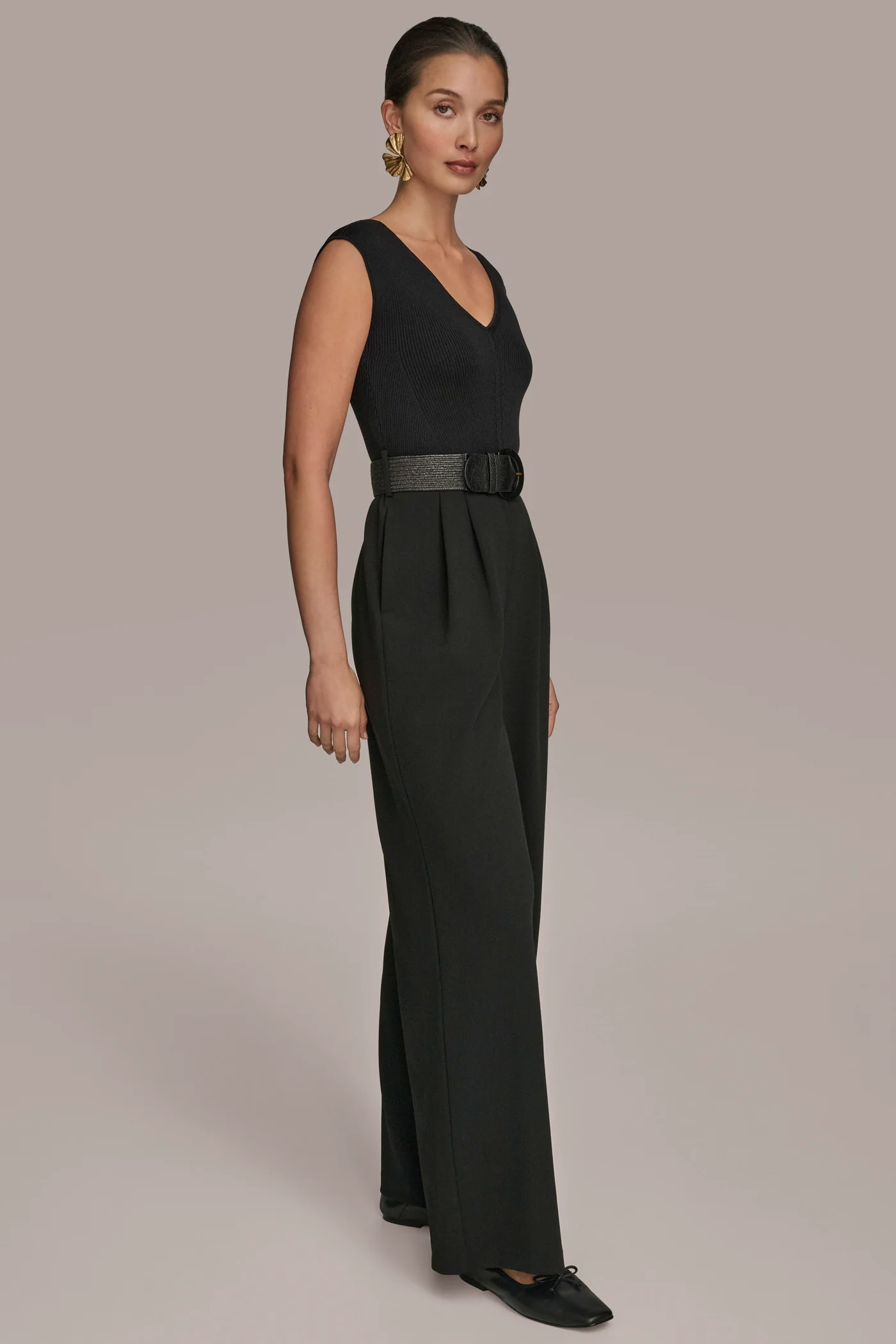 SLEEVELESS V-NECK WIDE-LEG JUMPSUIT